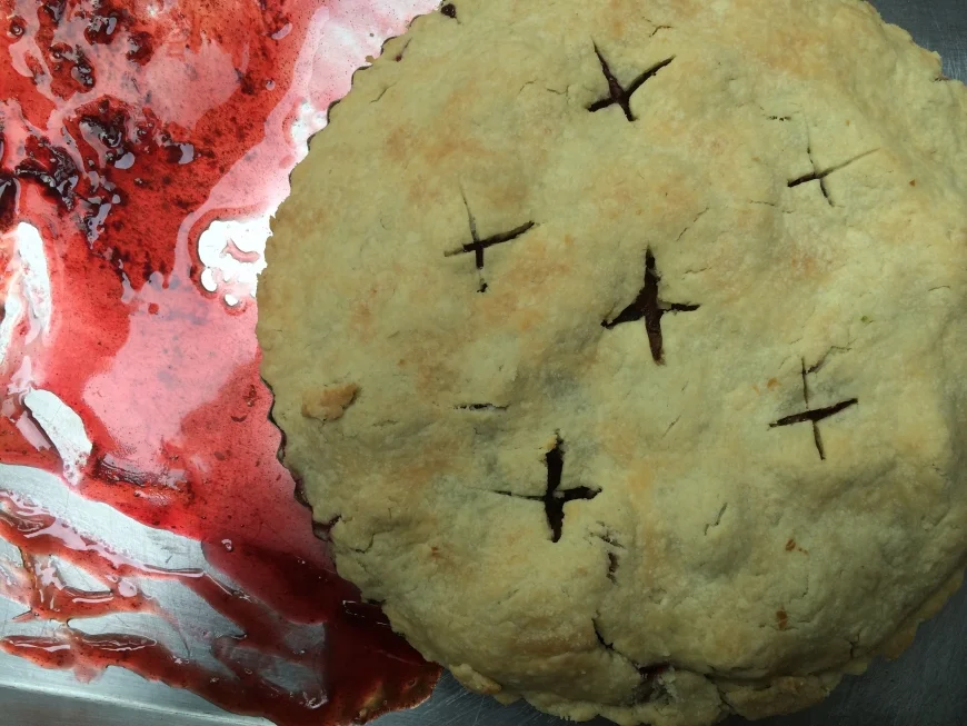 Place pie on a baking sheet and bake in the lower third of oven for 15 minutes. Reduce heat to 375 F. Bake for 30 to 40 minutes longer or until juices are bubbling and pastry is golden. If pastry gets too brown, cover with a sheet of parchment paper.